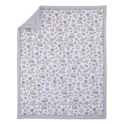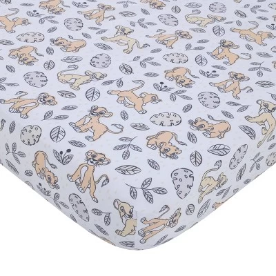 - 6-Piece Nursery Crib Bedding Set includes a printed comforter, two fitted crib sheets, crib skirt, appliqued blanket and appliqued changing table cover, featuring Disney’s favorite little lion cub, Simba