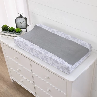 The Disney Mighty Mickey Changing Pad Cover features a cozy, solid gray center with a gray and white all-over Mickey silhouette pattern on the sides. Measures 16″ x 32″ x 6″ and is machine washable for easy care. Made with super soft fabrics and fits a standard size contoured changing pad. Helps to keep baby comfortable and dry. Coordinates with the full line of Mighty Mickey crib bedding and accessories.