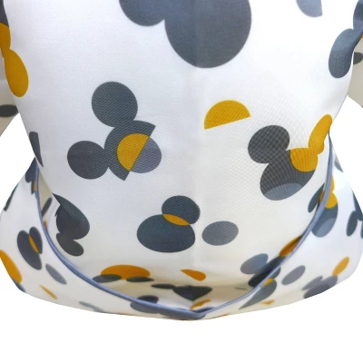 Let Disney’s beloved Mickey Mouse help you conquer messy mealtimes and beyond! This full coverage long-sleeve toddler coverall bib features an updated modern graphic Mickey Mouse print. The lightweight, PVC free water and stain-resistant polyester fabric protects baby’s clothing and makes clean-up a breeze. Bib features an oversized flip-style crumbcatcher that stays open to catch all those extra messes! Provides the perfect amount of coverage for toddlers during feeding time, playtime or arts and crafts. Elasticized sleeves and an adjustable easy back closure ensures a secure fit. Machine washable and air dries quickly.