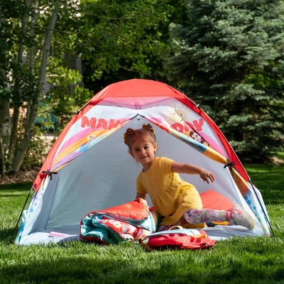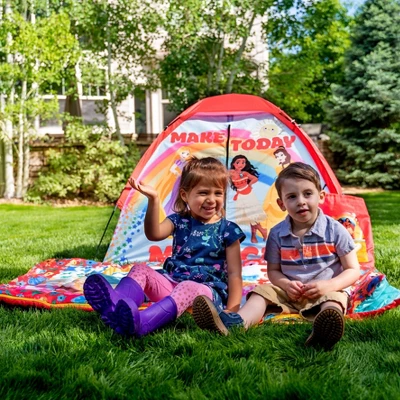 The Disney Princess 5-Piece Adventure Kit includes all the essentials needed for outdoor adventures and indoor slumber parties: a dome tent, sleeping bag, drawcord backpack, LED flashlight and carabiner compass. The 4 ft. x 3 ft. tent features a simple two-pole setup and convenient carry bag. The sleeping bag has a full-length zipper that opens flat to work as a blanket, with breathable fabrics and cozy insulation to maintain a comfortable temperature all night long. The roomy, drawcord style backpack with mesh pocket and padded shoulder straps ensures no toy, stuffy or book needs to be left behind. Finally, no adventure is complete without a flashlight and compass, so your little one can lead the way! You’ll be ready for any adventure your little one can dream up with the Disney Princess 5-Piece Fun Adventure Kit.
